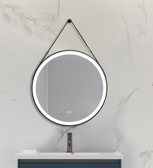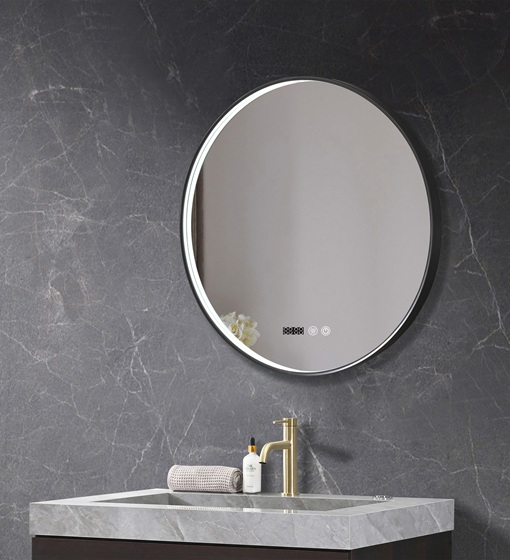 ΚΑΘΡΕΦΤΗΣ ΜΠΑΝΙΟΥ ΜΕ ΙΜΑΝΤΑ LED ΑΦΗΣ MIRRORLUX SELENE S-4676B ΣΤΡΟΓΓΥΛΟΣ Φ-800MM ΜΑΥΡΟΣ
