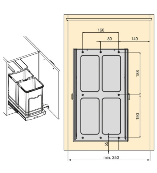ΜΗΧΑΝΙΣΜΟΣ ΚΟΥΖΙΝΑΣ LEMI MAGIC CORNER ΜΕ ΦΡΕΝΟ ΓΙΑ ΠΟΡΤΑ 45CM