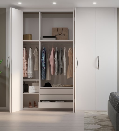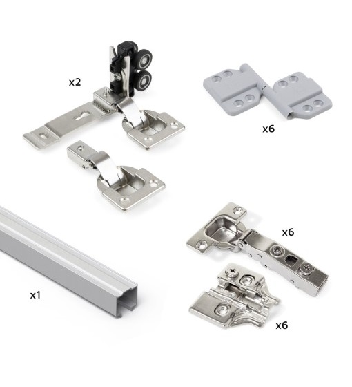 Μηχανισμός συρόμενης σπαστής τετράφυλλης ντουλάπας Twofold της Emuca σε kit κατάλληλο για 4 ξύλινες πόρτες, οι οποίες οι δύο σπάνε αριστερά και οι άλλες δύο δεξιά. Το kit περιλαμβάνει τον οδηγό πάνω με μέγιστο μήκος 2350mm, τα ράουλα για τις πόρτες, τους μεσαίους μεντεσέδες για τις μεσαίες πόρτες και μεντεσέδες με φρένο για να κλείνουν οι ακριανές πόρτες απαλά. Το μέγιστο βάρος ανά πόρτα είναι τα 25kg, καθώς τα ράουλα είναι κατασκευασμένα από χάλυβα και ισχυρό πλαστικό, κάτι το οποίο τα κάνει ανθεκτικά σε βάρος και πίεση. Αυτό το σύστημα χρησιμοποιείται πολύ συχνά σε περιορισμένους χώρους, όπως μικρά μπάνια, βεστιάρια και άλλα σημεία όπου δεν υπάρχει δυνατότητα τοποθέτησης κατασκευής με ανοιγόμενες πόρτες. Ο μηχανισμός Twofold της Emuca είναι διαθέσιμος ασημί απόχρωση, είναι ισπανικής προέλευσης και συνοδεύεται από 2 χρόνια εργοστασιακή εγγύηση.