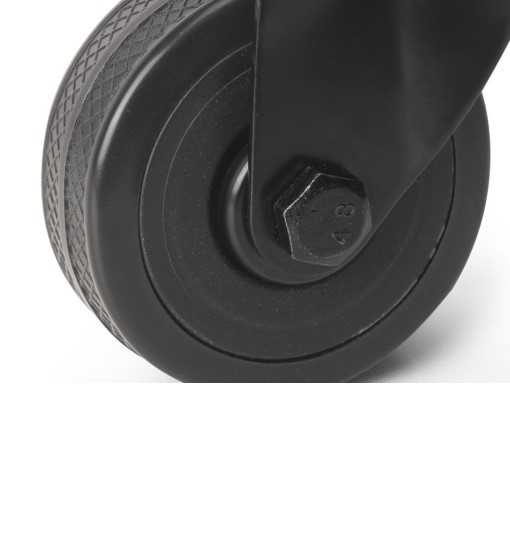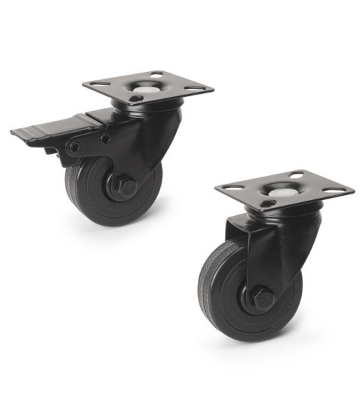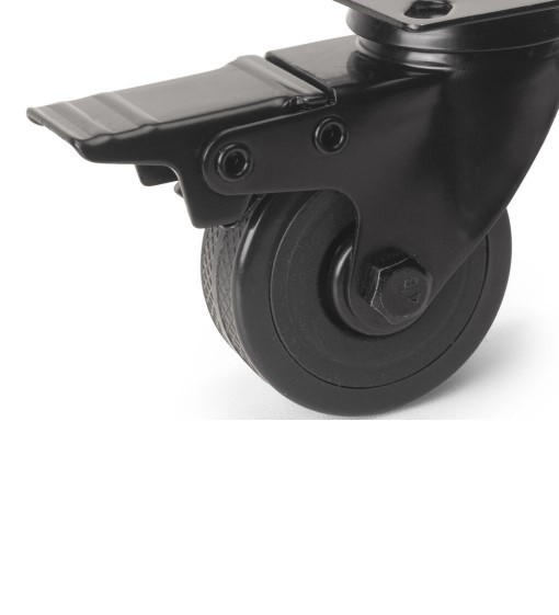 Ρόδα βαρέου τύπου επίπλων σε μαύρη απόχρωση. Η διάμετρος της ρόδας είναι 50mm με συνολικό ύψος 75mm. Είναι κατασκευασμένη από υψηλής ποιότητας υλικά με μέγιστο βάρος φορτίου 35kg ανά ρόδα. Τοποθετείται εύκολα και διευκολύνει την μετακίνηση επίπλων και αντικειμένων χωρίς να φθείρει τα πατώματα και να δυσκολεύει τον μεταφορέα. Το σετ περιλαμβάνει 2 ρόδες με φρένο και δύο ρόδες χωρίς φρένο καθώς επίσης και τις βίδες σε μαύρο χρώμα για την τοποθέτηση τους. Η διακοσμητικές μαύρες ρόδες επίπλων είναι της Emuca ισπανικής κατασκευής και συνοδεύονται από δύο χρόνια εργοστασιακή εγγύηση.