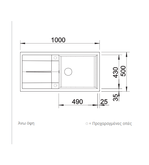 ΝΕΡΟΧΥΤΗΣ ΕΝΘΕΤΟΣ BLANCO METRA XL 6 S ΑΠΟ ΓΡΑΝΙΤΗ 100X50CM