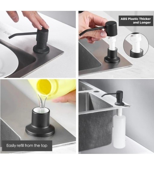 Διανομέας υγρού σαπουνιού dispenser κουζίνας κατάλληλο για όλους τους τύπους νεροχυτών κουζίνας. Αποτελείται από ρουξούνι κατασκευασμένο από ανοξείδωτο ατσάλι και στο κάτω μέρος του από πλαστικό δοχείο τοποθέτησης υγρού σαπουνιού χωριτηκότητας 350ml. Είναι διαθέσιμο σε χρώμιο, μαύρο και λευκό γρανίτη για να επιλέξετε το κατάλληλο για την κουζίνα σας. Ο διανομέας υγρού σαπουνιού dispenser κουζίνας είναι της Finetto ιταλικής κατασκευής και συνοδεύεται από δύο χρόνια εργοστασιακή εγγύηση.