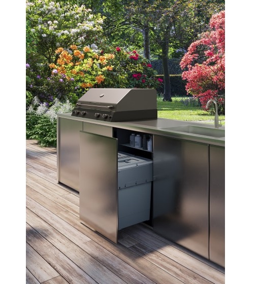 Συρόμενο σετ δοχείων απορριμάτων της Elletipi. Στο σετ περιλαμβάνονται οι πλαϊνοί οδηγοί συρταριού και και η μετώπη από όπου πιάνεται και σύρεται προς τα έξω τα δοχεία ή μπορείτε να ενσωματώσεται επάνω το πορτάκι που έχετε. Είναι μία εξαιρετική λύση σχεδιασμού για κάθε μοντέρνα κουζίνα. Ο συρόμενος μηχανισμός σας δίνει τη δυνατότητα της πλήρης πρόσβασης στα δοχεία απορριμάτων. Είναι διαθέσιμο για ερμάρια 300, 400, 450 & 600mm και η χωρητικότητα τους είναι 35, 47 & 70 λίτρα αντίστοιχα. Διαθέτει αφαιρούμενους εσωτερικούς κάδους με χειρολαβή. Το ανθρακί φινίρισμα του ταιριάζει απόλυτα με όλους τους χρωματισμούς κουζίνας. Το συρόμενο σετ δοχείων είναι της Εlletipi ιταλικής κατασκευής και συνοδεύεται από δύο χρόνια εργοστασιακή εγγύηση.