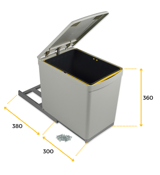Τα δοχεία απορριμάτων της Emuca είναι απολύτως αξιόπιστα τόσο σε ποιότητα όσο και σε design και λειτουργικότητα. Ο συρόμενος κάδος σε γκρι χρώμα αποτελείται εξωτερικά και εσωτερικά από ανθεκτικό πλαστικό και μέσα περιέχει ένα πλαστικό δοχείο που αφαιρείται για την απομάκρυνση των απορριμάτων. Ο κάδος έχει χωρητικότητα 16 λίτρα. Η κίνηση του είναι πολύ εύκολη και μπορεί να καθαριστεί πολύ εύκολα με λίγες μόνο κινήσεις. Η τοποθέτηση του μπορεί να γίνει πανεύκολα καθώς τοποθετείται στο εσωτερικό του ντουλαπιού με βίδες. Όλα τα προϊόντα της Emuca έχουν δύο χρόνια εργοστασιακή εγγύηση.