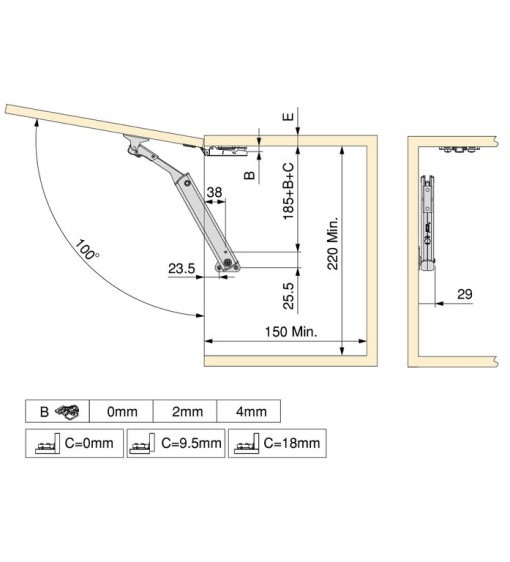 ΣΥΣΤΗΜΑ ΑΝΥΨΩΣΗΣ ΓΙΑ ΔΙΠΛΕΣ ΣΠΑΣΤΕΣ ΠΟΡΤΕΣ BLUM AVENTOS HF TOP ΓΚΡΙ