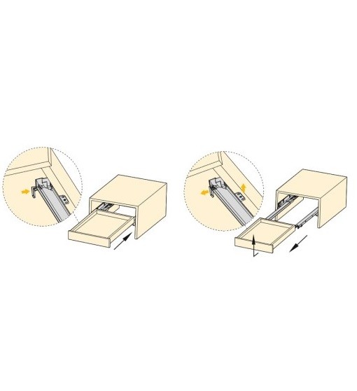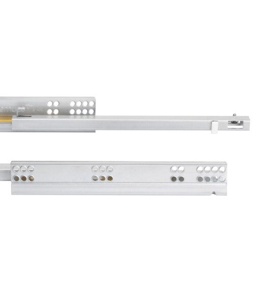 Κρυφός οδηγός ξύλινου συρταριού Silver της Emuca με φρένο για ομαλή και αθόρυβη κίνηση του συρταριού. Έχει δυνατότητα μερικής εξαγωγής του συρταριού έως και 80% του συνολικού μήκους του. Διατείθετε από 240mm έως 490mm. Το μέγιστο βάρος σε αντοχή του μηχανισμού φτάνει τα 25kg. Σας δίνει τη δυνατότητα ρύθμισης του ύψους από +/-5mm. Η τοποθέτηση του είναι πολύ εύκολη καθώς δεν απαιτείται χρήση ειδικών εργαλείων. Ο κρυφός οδηγός για ξύλινο συρτάρι είναι της Emuca ισπανiκής κατασκευής και συνοδεύεται από πέντε χρόνια εργοστασιακή εγγύηση.