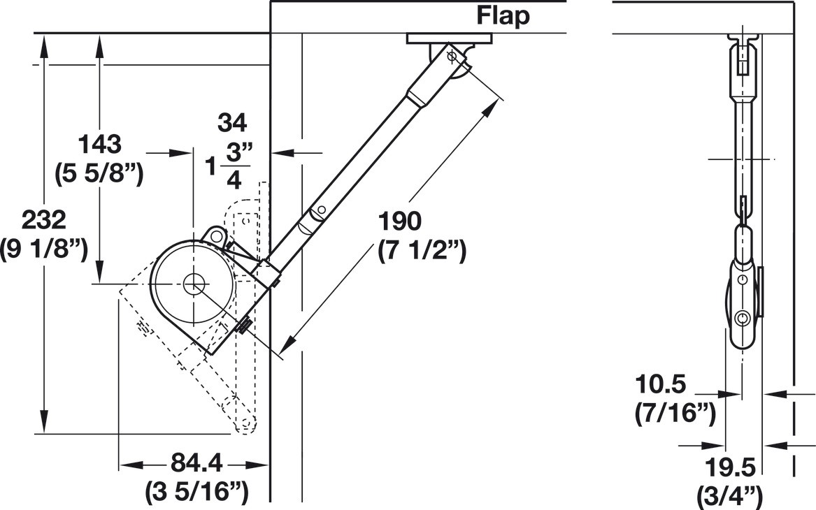 Το κομπάσο ανύψωσης Sugatsune προσφέρει σχεδιαστική ελευθερία υψηλού επιπέδου για μικρά ερμάρια, χάρη στον στενό του σχεδιασμό. Ο συμμετρικός μηχανισμός ανύψωσης μπορεί να χρησιμοποιηθεί στη μία ή και στις δύο πλευρές ανάλογα με το βάρος και τη διάσταση του ντουλαπιού. Όταν χρησιμοποιείται και στις δύο πλευρές, μπορούν να τοποθετηθούν πιο βαριές μετώπες.