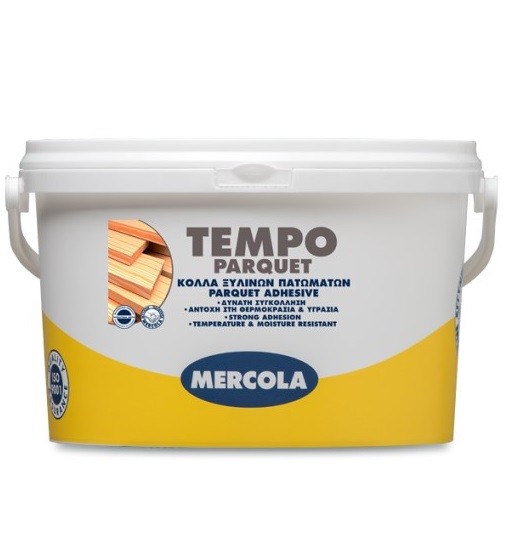Η Tempo Parquet είναι υδατοδιαλυτή λευκή κόλλα PVAC, κατάλληλη για ξύλινα δάπεδα. Προσφέρει γρήγορη και δυνατή συγκόλληση, με εξαιρετική αντοχή στην υγρασία. Είναι ιδιαίτερα κατάλληλη για εξωτερικές χρήσεις. Γίνεται διαφανής μετά το στέγνωμα.