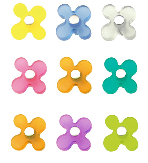 Εδώ υπάρχει διαθέσιμη μία μεγάλη ποικιλία σε παιδικά πόμολα ώστε να βρείτε αυτά που ταιριάζουν περισσότερο στο ύφος του προσωπικού σας χώρου συνδυάζοντας την αισθητική με την ασφάλεια και την λειτουργικότητα. Η μεγάλη γκάμα χρωμάτων σας προσφέρει απεριόριστες λύσεις και συνδυασμούς δίνοντας χρώμα και ζωντάνια στο παιδικό σας έπιπλο. Τα υλικά τηρούν τις κατάλληλες προδιαγραφές και είναι πιστοποιημένα για την ασφάλεια των μικρών παιδιών. Επίσης σε κάθε συσκευασία περιλαμβάνεται και οι βίδες για τη τοποθέτηση του πομόλου.
