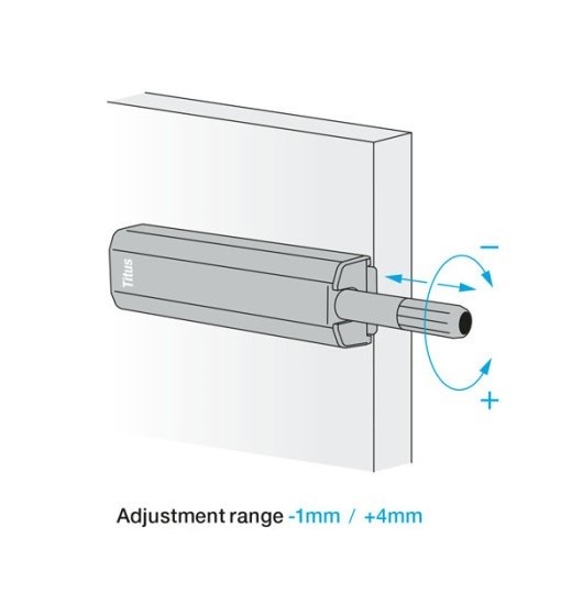 Push latch με βεντούζα και soft κίνηση κατά το άνοιγμα της Titus σε ασημί απόχρωση για εύκολο άνοιγμα ντουλαπιών με μία μόνο κίνηση. Εδώ και πολλά χρόνια κατέχει τη Νο1 θέση της αγοράς στο είδος του και χρησιμοποιείτε από χιλιάδες κατασκευαστές. Μπορείτε να το τοποθετήσετε εξωτερικά με βίδες σε οποιδήποτε σημείο εσείς επιθυμείτε χωρίς να φαίνονται οι βίδες καθώς διαθέτει ίσια κρυφή βάση που το κάνει κομψό και διακριτικό. Κύριο χαρακτηριστικό του είναι η δύναμη ανοίγματος που διαθέτει καθώς αποτελείται από πολύ ισχυρό σουστάκι και έχει δυνατότητα ρύθμισης από την μπροστινή του πλευρά. Το push latch είναι της Titus Group σλοβένικης κατασκευής και συνοδεύεται από δύο χρόνια εργοστασιακή εγγύηση.